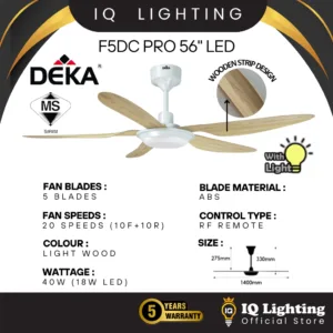 DEKA DR20L /F5DCL/DX56L WITH 3 COLOUR LED LIGHT 56” WITH REMOTE CONTROL FAN / NEW MODEL / LAMPU KIPAS / 5 Year Warranty
