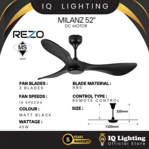 🔥FREE SHIPPING🔥 REZO Milanz Ceiling Fan 52" 42" DC Motor 3 Blade With Remote / Designer Fan /Kipas Angin Siling Fan/家用风扇