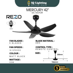 🔥FREE SHIPPING🔥 REZO Mercury Ceiling Fan 32'' 42'' 56'' DC Motor 5 Blades With Remote / Kipas Angin Siling Fan / 家用风扇