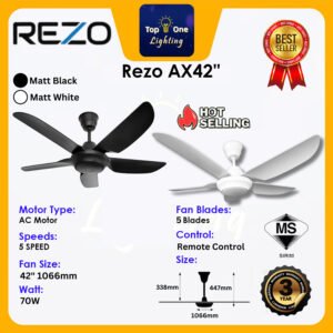 REZO Ceiling Fan ZERON PLUS 42/56 5B DC Motor 5 Blades with Remote Control Kipas Siling Kipas Angin (5 Years Warranty)