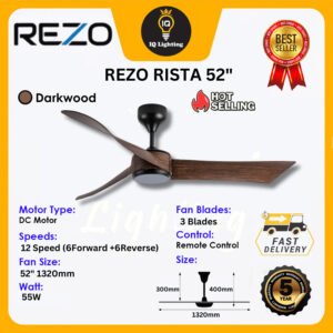 READY STOCK REZO MAXIM 54’’ Ceiling Fan Remote Control DC Motor 12 Speed (Forward & Reverse)