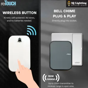reTouch Kinetic Wireless Doorbell Self Powered No Battery Required Door Bell Button Chime Black and White
