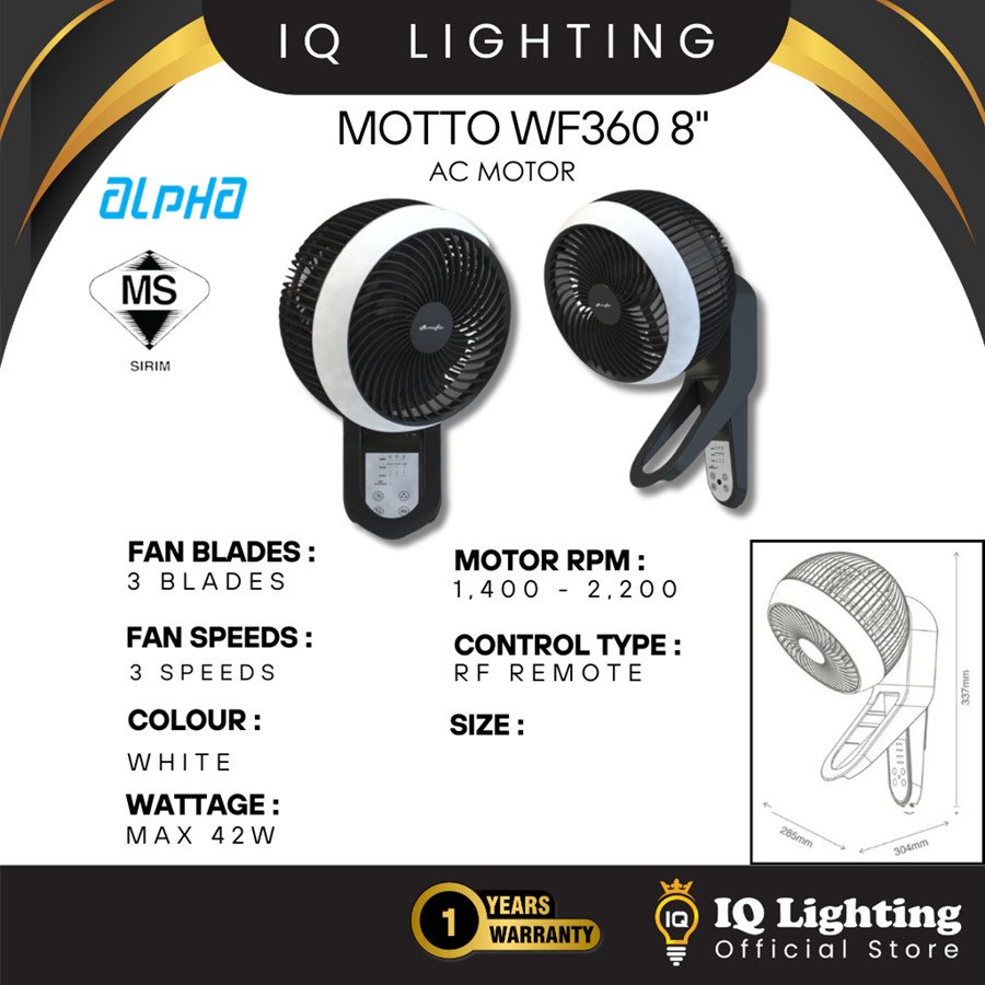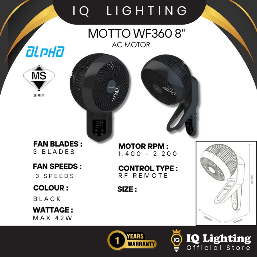 🔥FREE SHIPPING🔥 Alpha Motto Wall WF360 Wall Fan with Remote Designer Fan Collection Kipas Angin dinding Murah 墙壁风扇