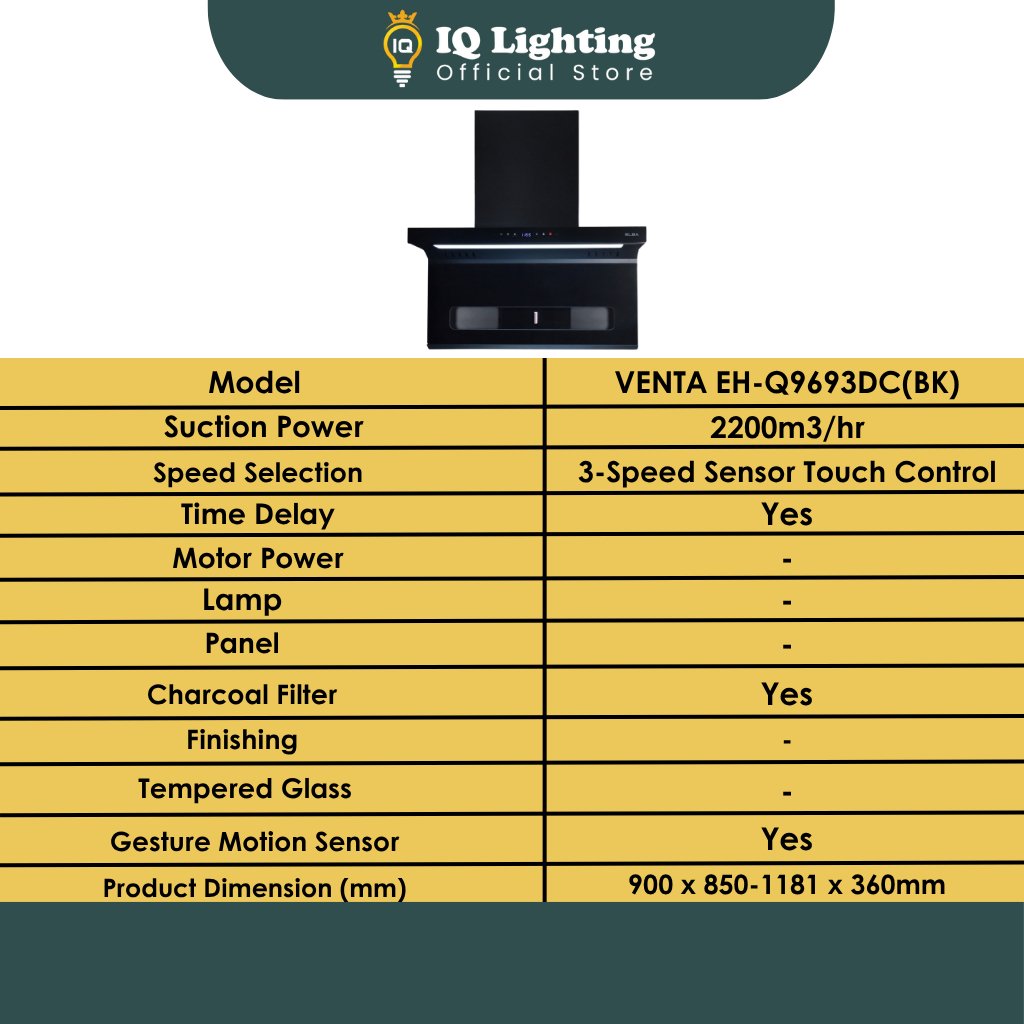 🔥FREE SHIPPING🔥 ELBA KITCHEN HOOD DC MOTOR VENTA EH-Q9693DC(BK) / KITCHEN COOKER HOOD /PENYEDUT ASAP DAPUR/ 抽油烟机
