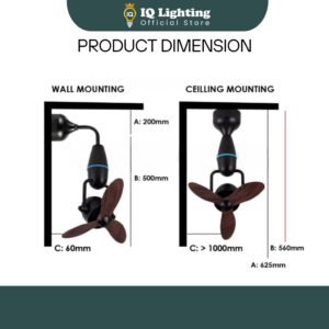 Fan Height: Ceiling Mount (22.6″) or Wall Mount (19″)