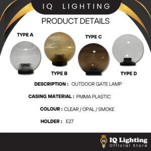 Outdoor Gate Light / Globe Light / Pilliar light OPAL Weather Proof Outdoor Pillar Light Lampu Pagar
