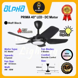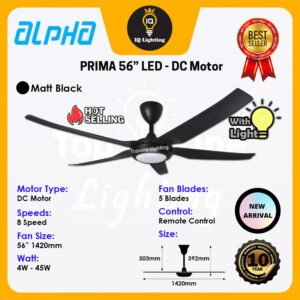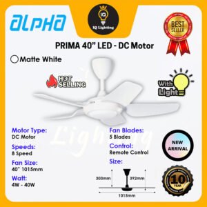 The PRIMA makes an impression through its slim body – lightness and agility are key to its design. The range is powered by Alpha engineered, silent and energy-efficient DC motors, enhanced by athletic ABS blades to offer optimal breeze and comfort. A handheld remote control is equipped to allow users to operate the 8 Speed Memory function and the super bright 3-tone LED, from anywhere in the room.