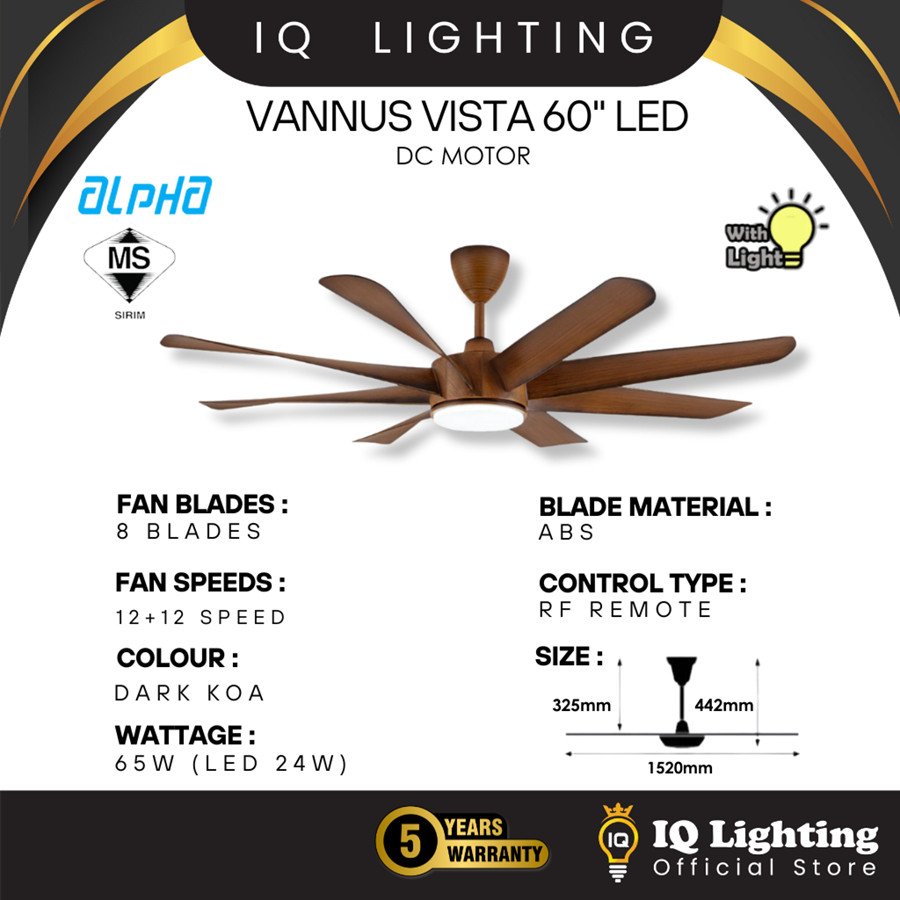 The Alpha Vannus Vista 8B is a 60-inch designer ceiling fan built for both performance and style. With 8 aerodynamic blades, it delivers powerful yet whisper-quiet airflow, perfect for large living areas, master bedrooms, or even semi-outdoor patios.