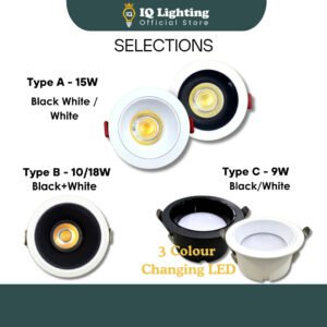 🔥NEW🔥Modern LED Recessed Eyeball LED Spotlight Black/White 9W 10W 15W 18W 3 Colour DL/CW/WW Mini Downlight Lampu Siling