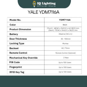 Yale YDM7116A Mortise Smart Door Lock – Fingerprint/ PIN Code/ RFID Keytag/ Bluetooth/ Yale Home App/ 2 Years Warranty/ Free Installation/ 0% Credit Card Instalment