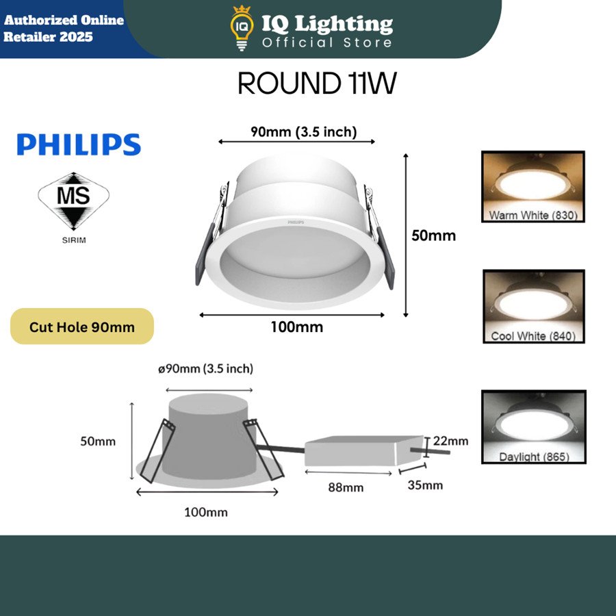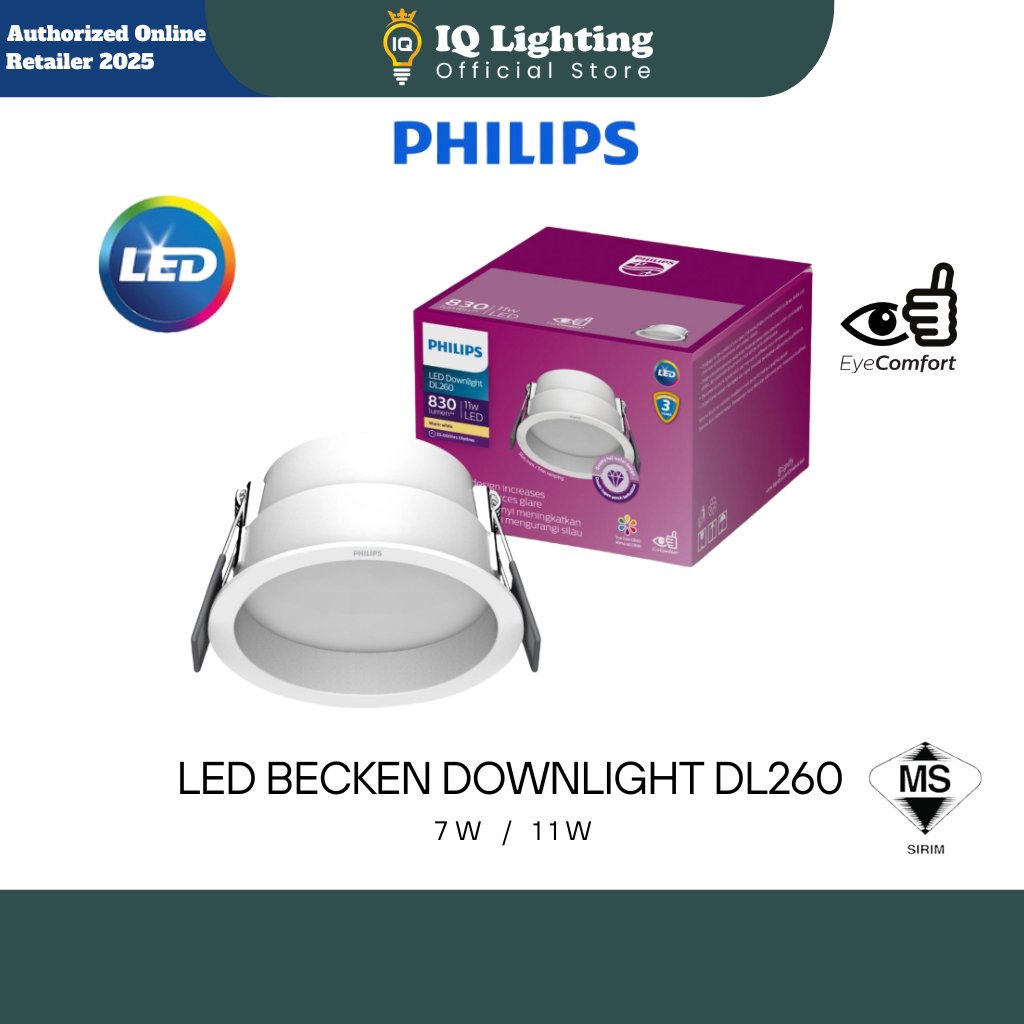 🔥NEW + ANTI GLARE🔥 PHILIPS LED Becken Downlight DL260 7W 11W ( 3000K / 6500K ) Philips Becken Lampu Siling