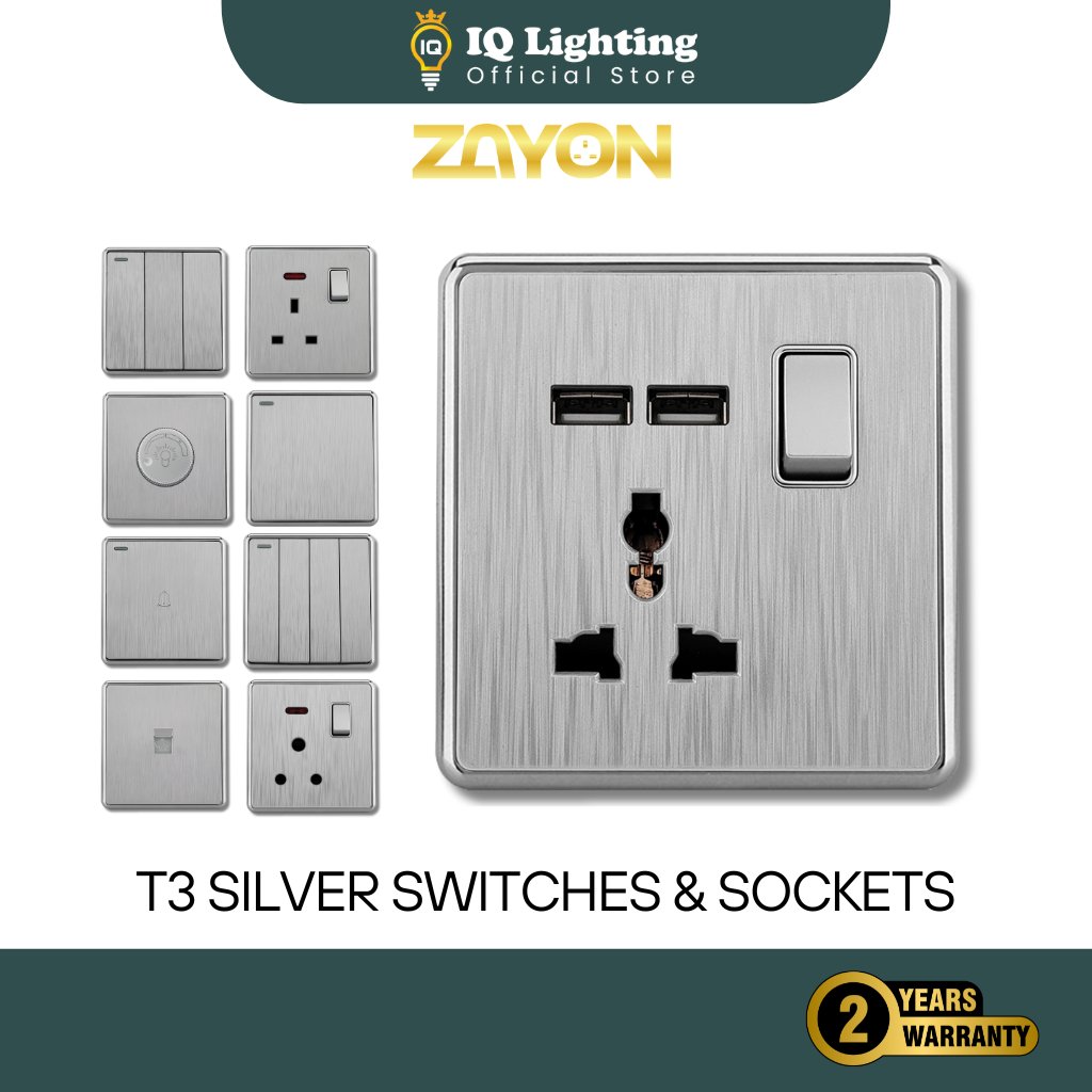 🔥SILVER🔥 ZAYON T3 Series Silver Socket Switch Modern Design Switch /Suis Socket / Plug Sius / 开关插座 / SIRIM APPROVED SUIS