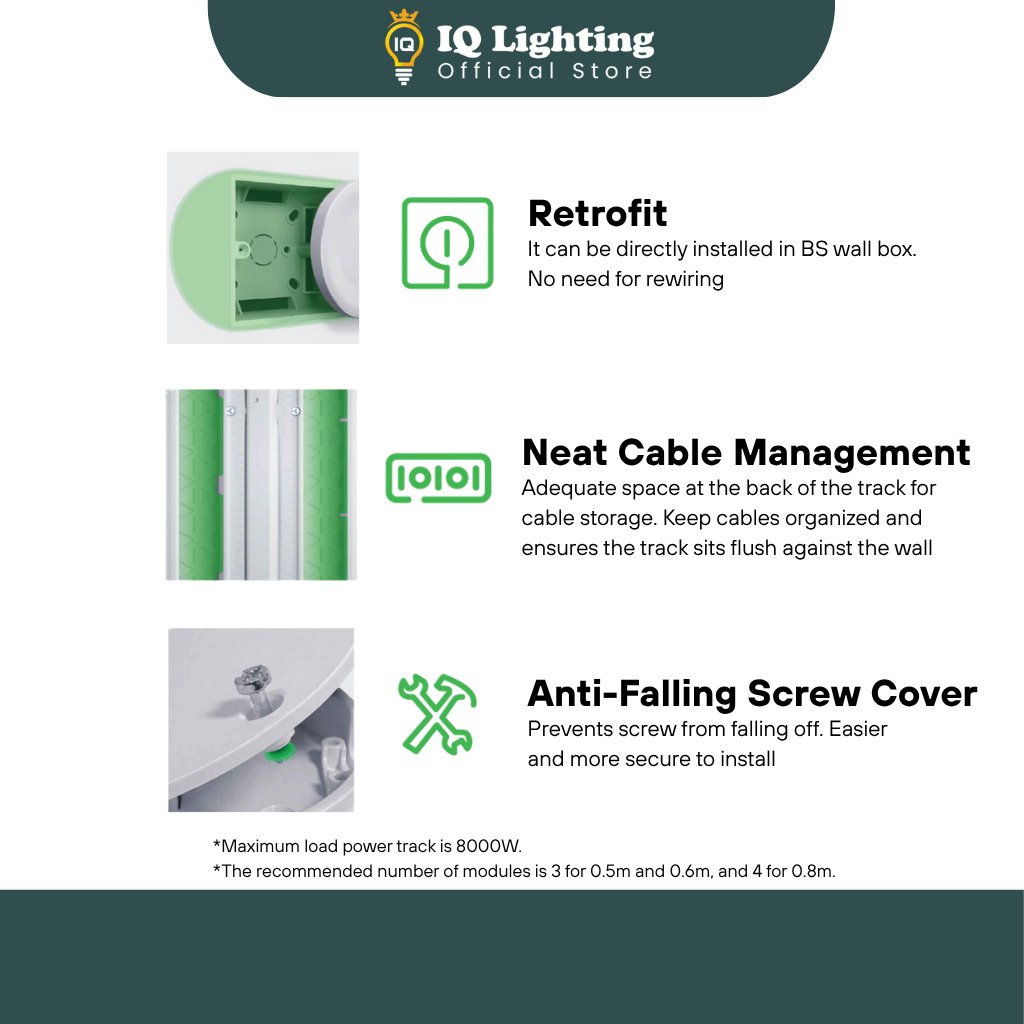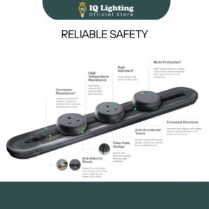 reTouch Power Track is designed carefully to prevent finger shock with fingerproof opening and grounding structure. All conductive items plugged into the track are electrically grounded and safe to use. It’s also made with sturdy aluminum body with fire retardant parts.