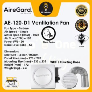 AireGard ventilators are equipped with ducting outlet so that stale air and moisture areactually extracted out of your room for hygienic air circulation.