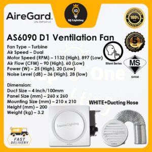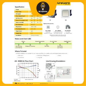 AireGard ventilators are equipped with ducting outlet so that stale air and moisture areactually extracted out of your room for hygienic air circulation.