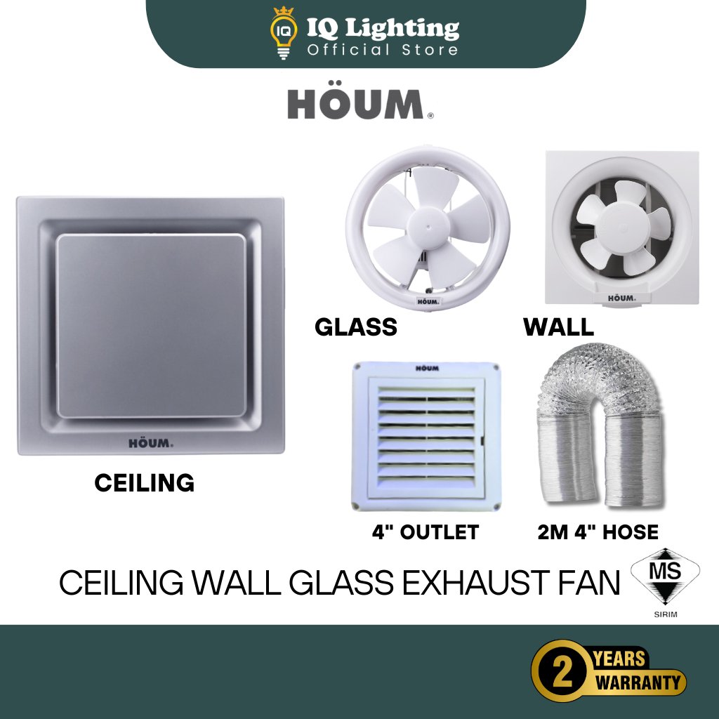 AIREGARD HOUM Ceiling Wall Glass Exhaust Fan 8 10 12 inche Ventilation Toilet Kipas Exhast Siling Dapur Rumah Bilik 抽风机