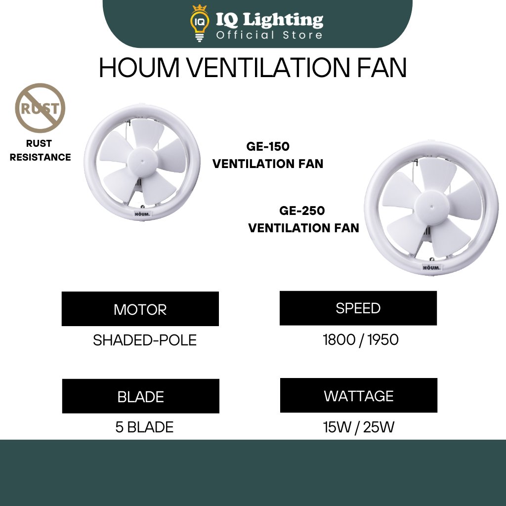 HOUM Dual Airflow Wall Mounted Ventilating Fan 6″ | DE-180