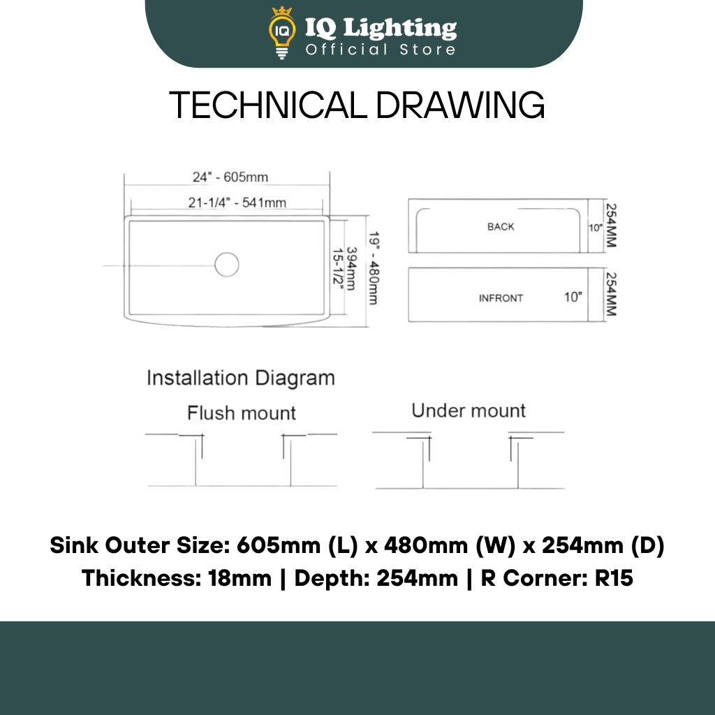 Be the first to review “Ceramic Farmhouse Kitchen Sink 605mm Single Bowl Handmade Ceramic Sink Fireclay Reversible Farmhouse Apron-Front Kitchen”