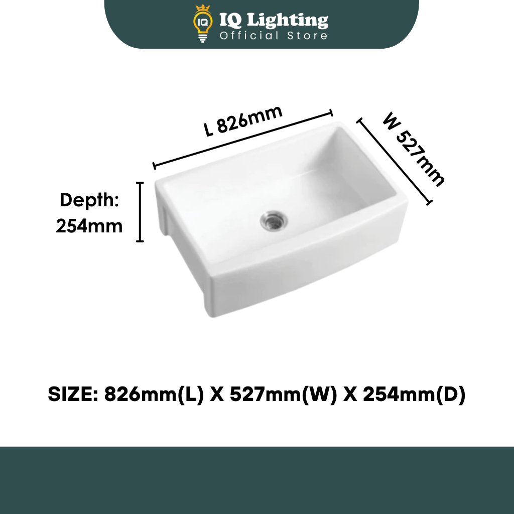 Made in CHINA | Constructed of true FIRECLAY a special white clay that is fired at 2900 °F for extreme strength and durability | Sink surface is RESISTANT to chips, abrasion or scratches.