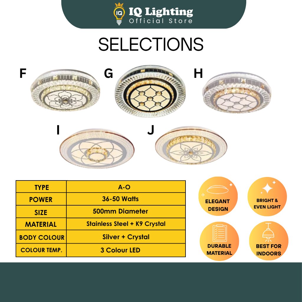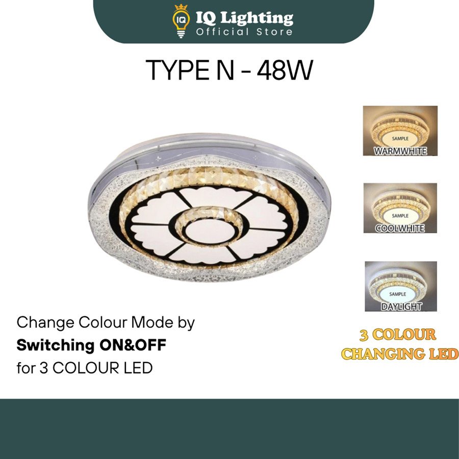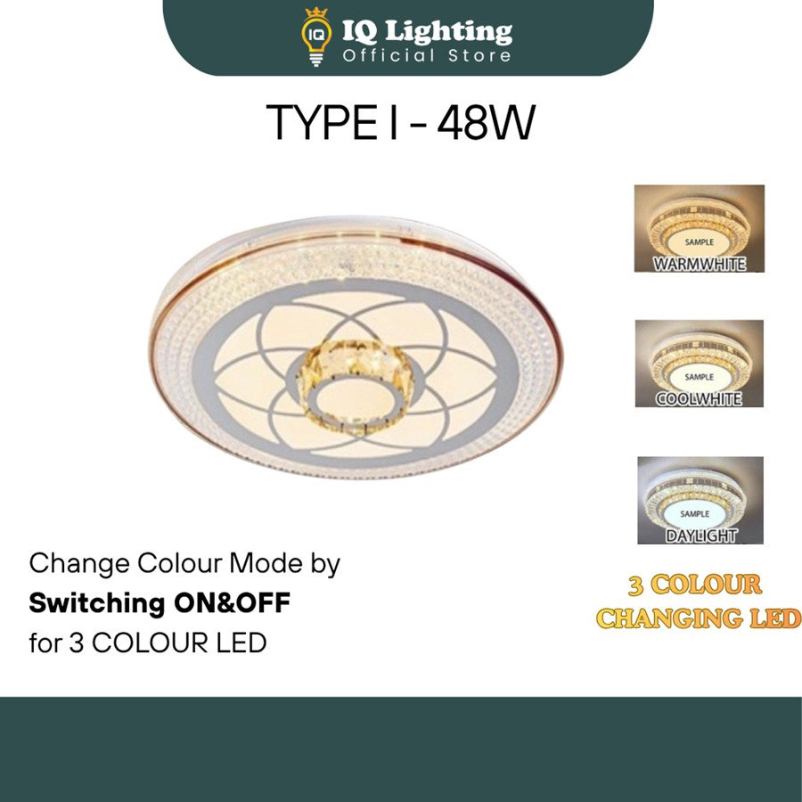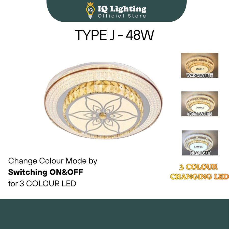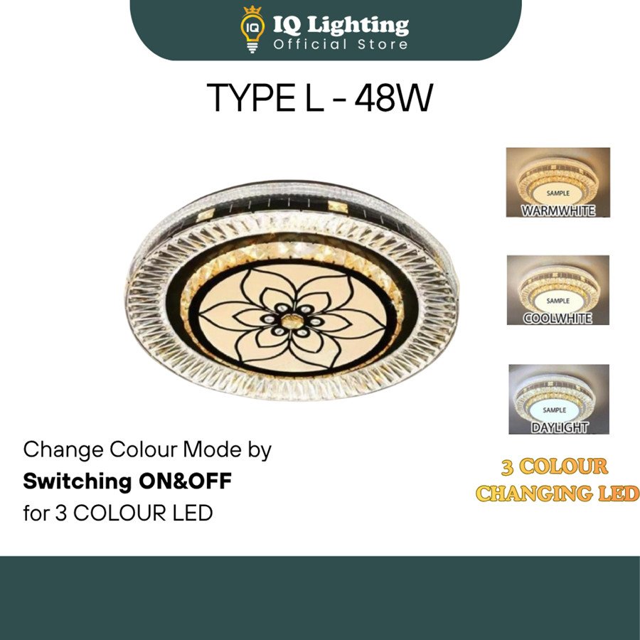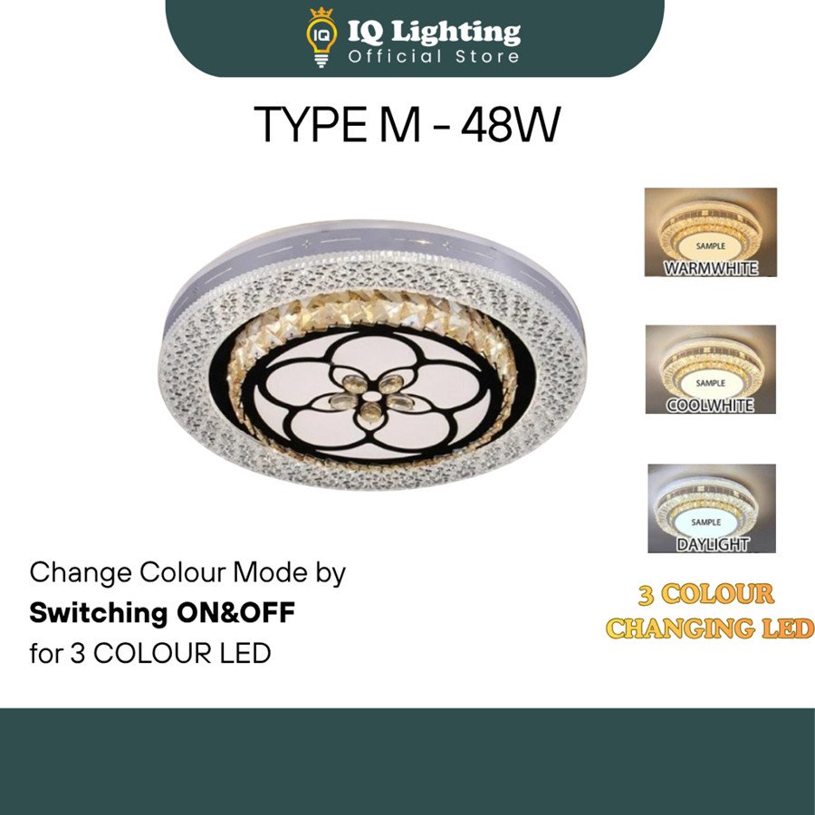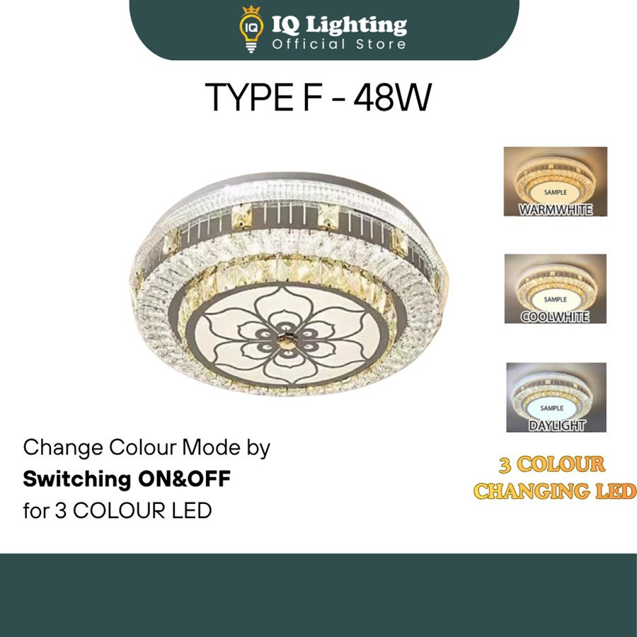 Crystal K9 Ceiling Light 3 Colour Led/Ceiling Mounted/Lampu Kristal K9/ Lampu Bilik/Lampu Ruang tamu/Lampu siling