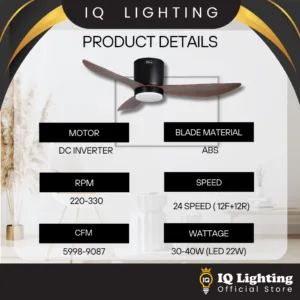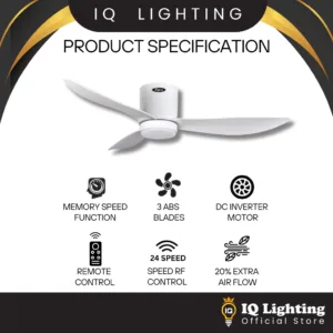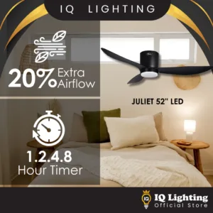 While the 𝐉𝐔𝐋𝐈𝐄𝐓 𝐒𝐞𝐫𝐢𝐞𝐬 whispers grace with a soft touch of elegance, its delicate blades and ceiling bracket designed for low spaces weaving a gentle breeze of serene luxury, enhanced by the warm glow of integrated LED lights.