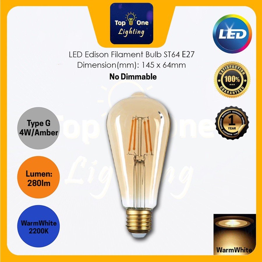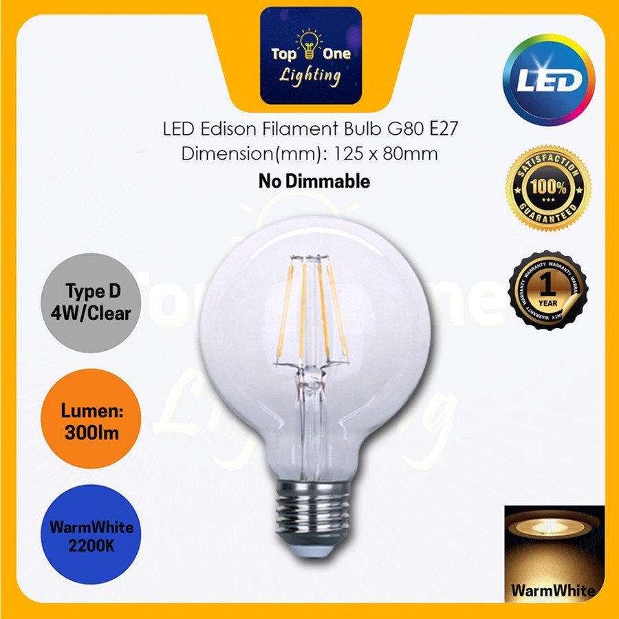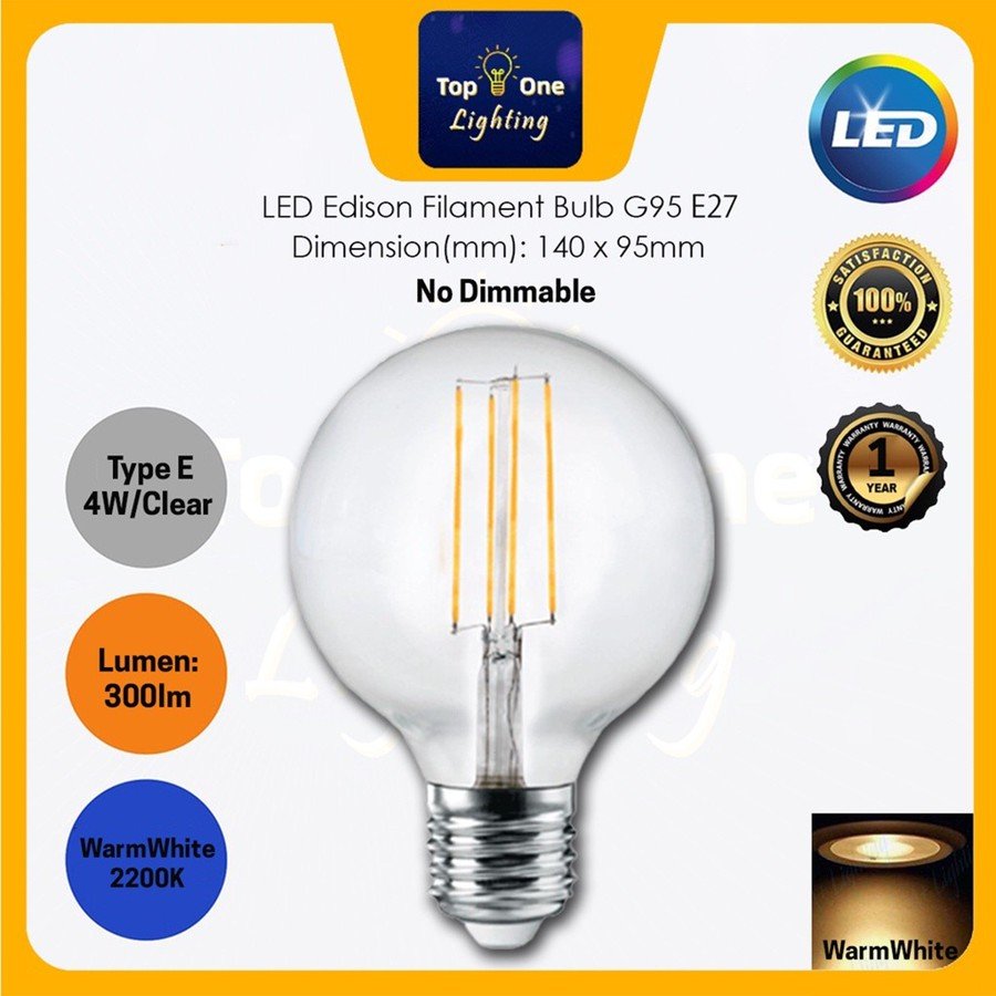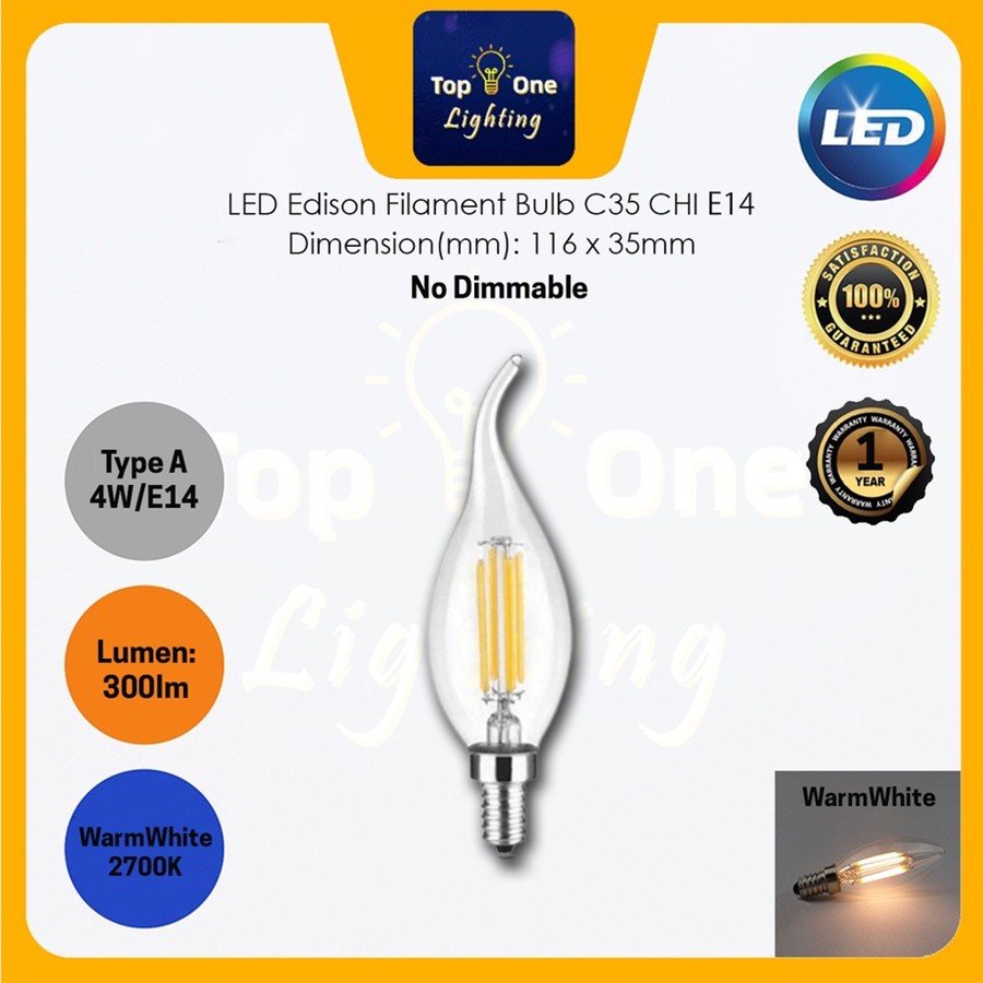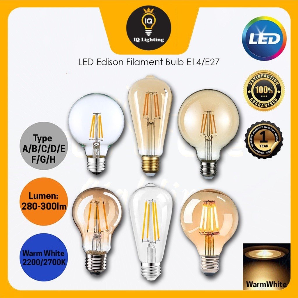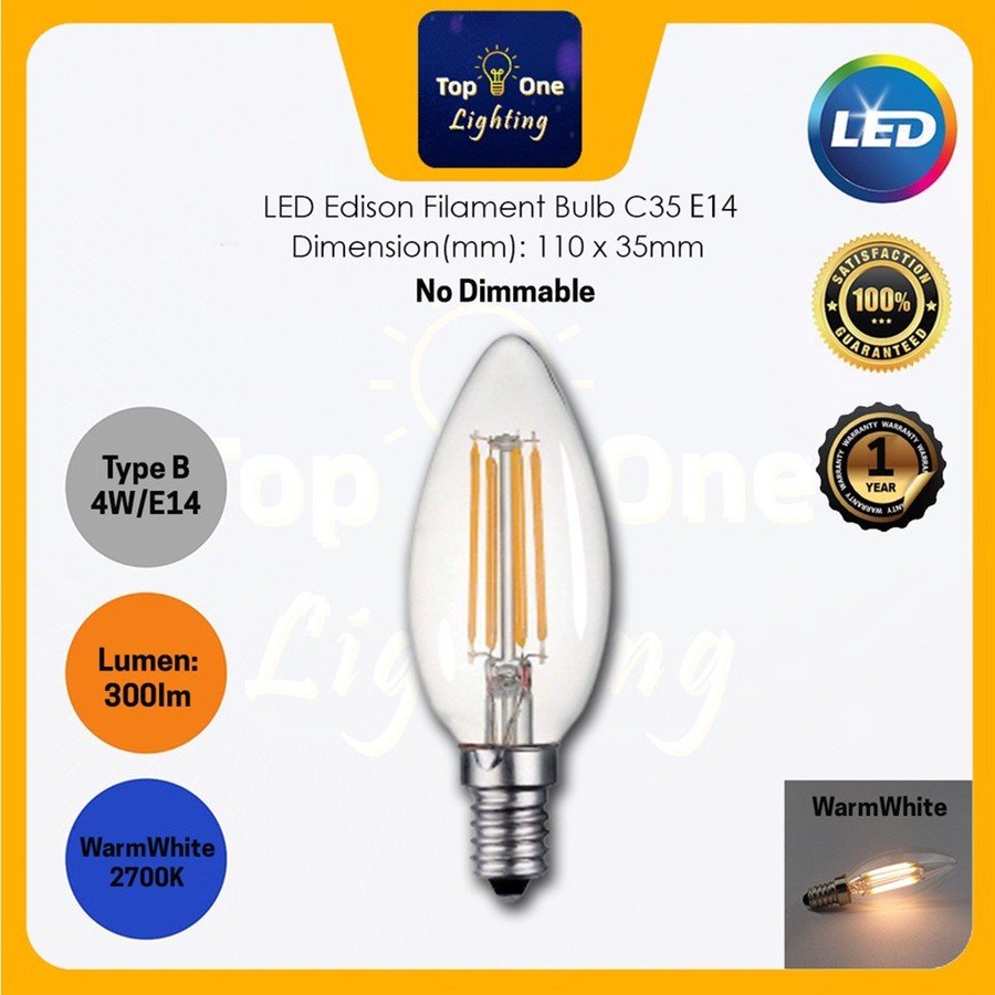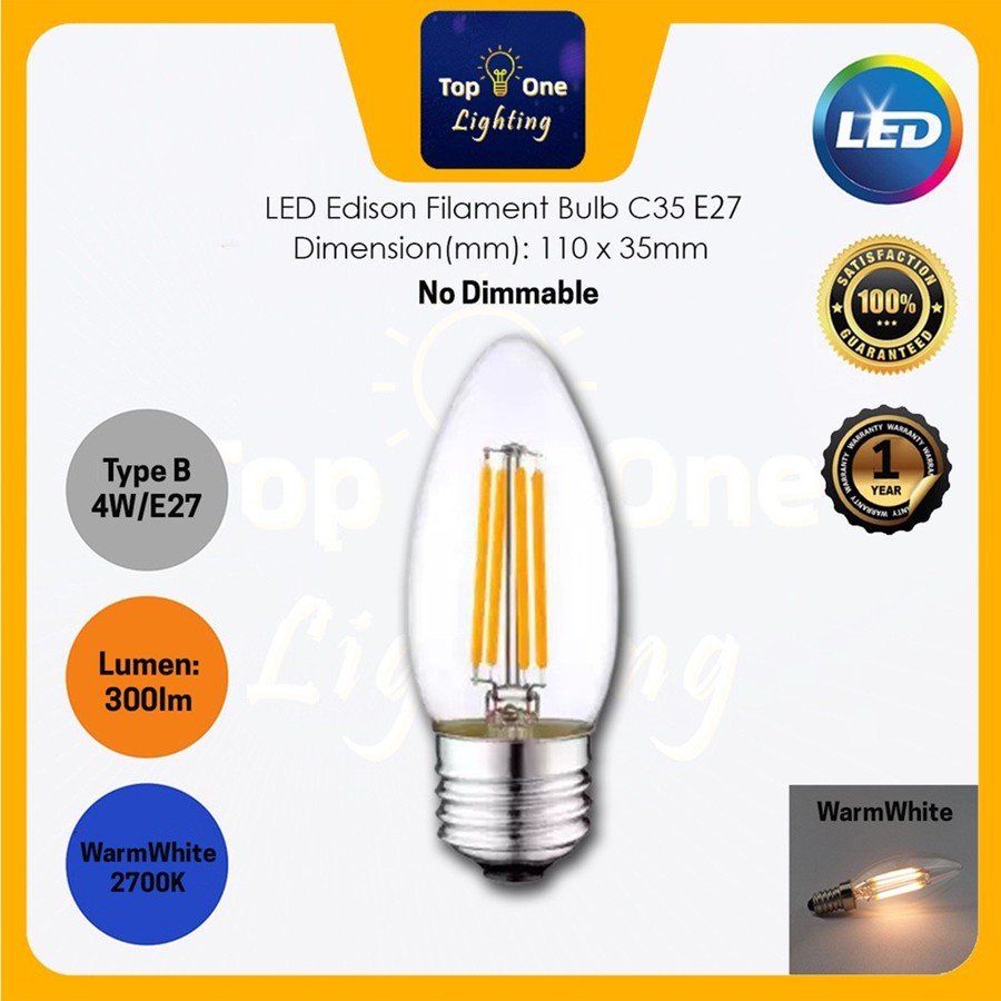 LED BULB 4W E14 / E27 LED Candle Bulb LED Edison Filament Bulb Warmwhite (2200k/2700K)