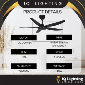 ELBA 54″ 5 Blades DC Ceiling Fan with Remote control 6 Speed ECF-R5430