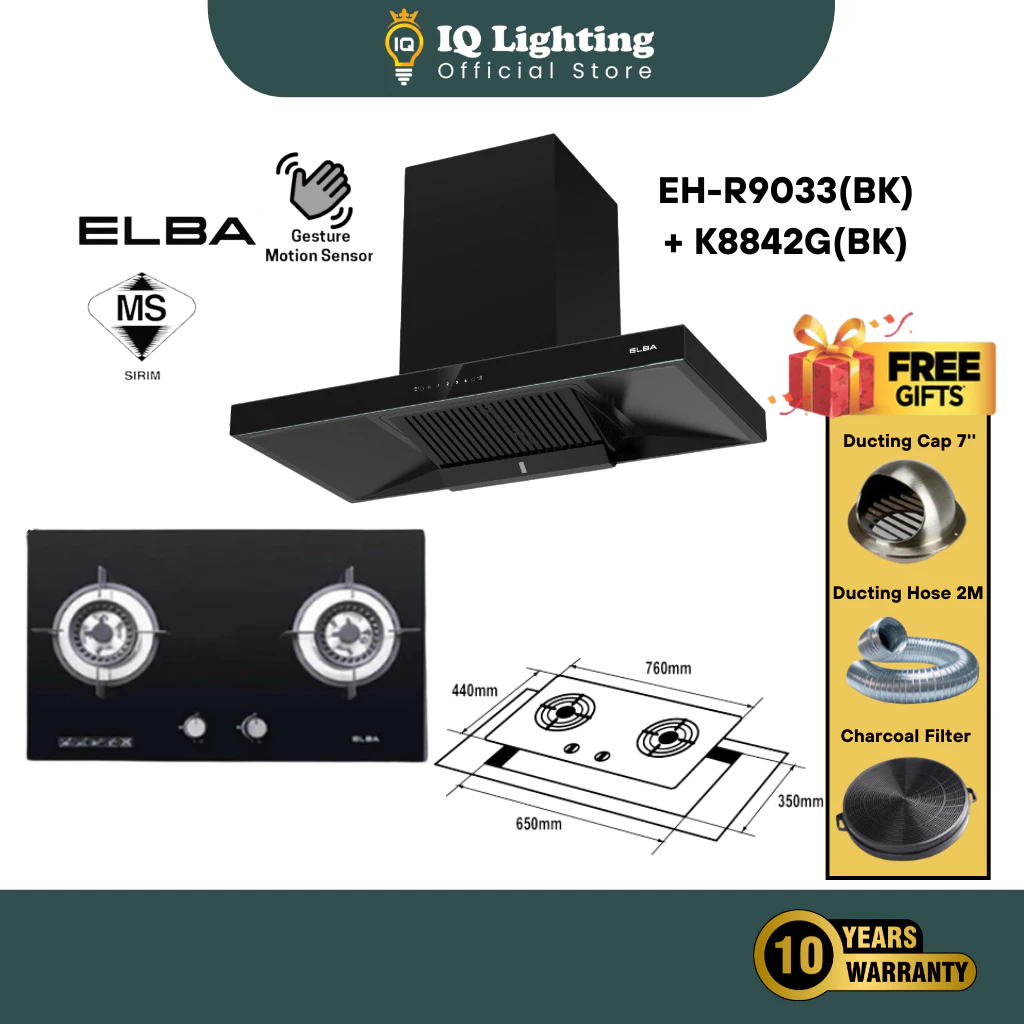 🔥FREE SHIPPING🔥Elba Designer Hood EH-R9033(BK) Full Black Series Hood with Cooker Hob Gas Cooker Dapur Gas / 抽油烟机
