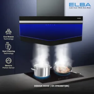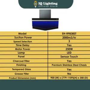 ❄️ COLOURON Series Designer Hood EH-R9838ST(BK) – Arctic Blue light with Effortless Heat Cleaning! Say goodbye to scrubbing grease.​