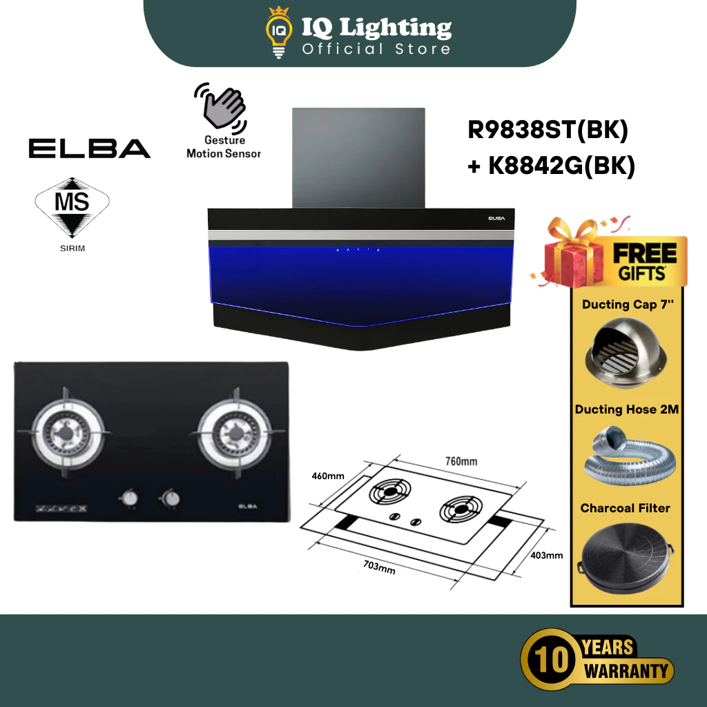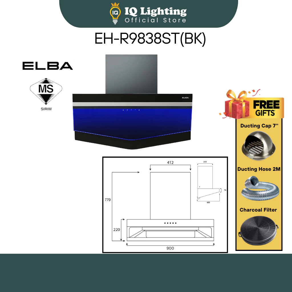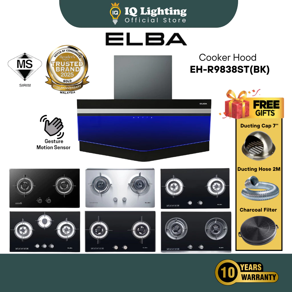 🔥FREE SHIPPING🔥ELBA HOOD EH-R9838ST(BK) Designer Cooker Hood Kitchen Hood and Hob EGH-K8842G(BK) & EGH-K8843G(BK) / 抽油烟机