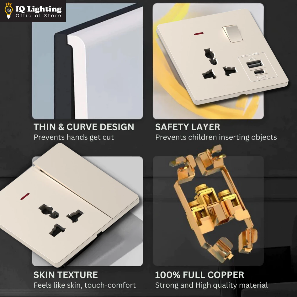 – 13A Flat Pin USB A+C (Max 2.1A / 10.5W) – ✅ SIRIM