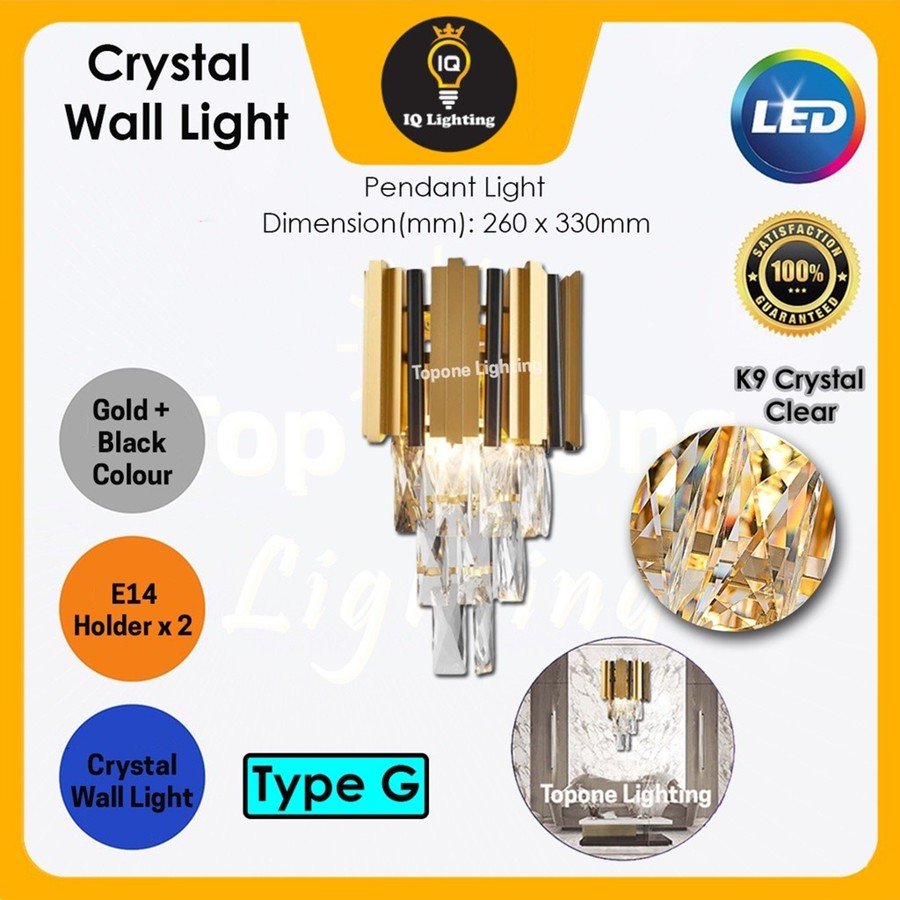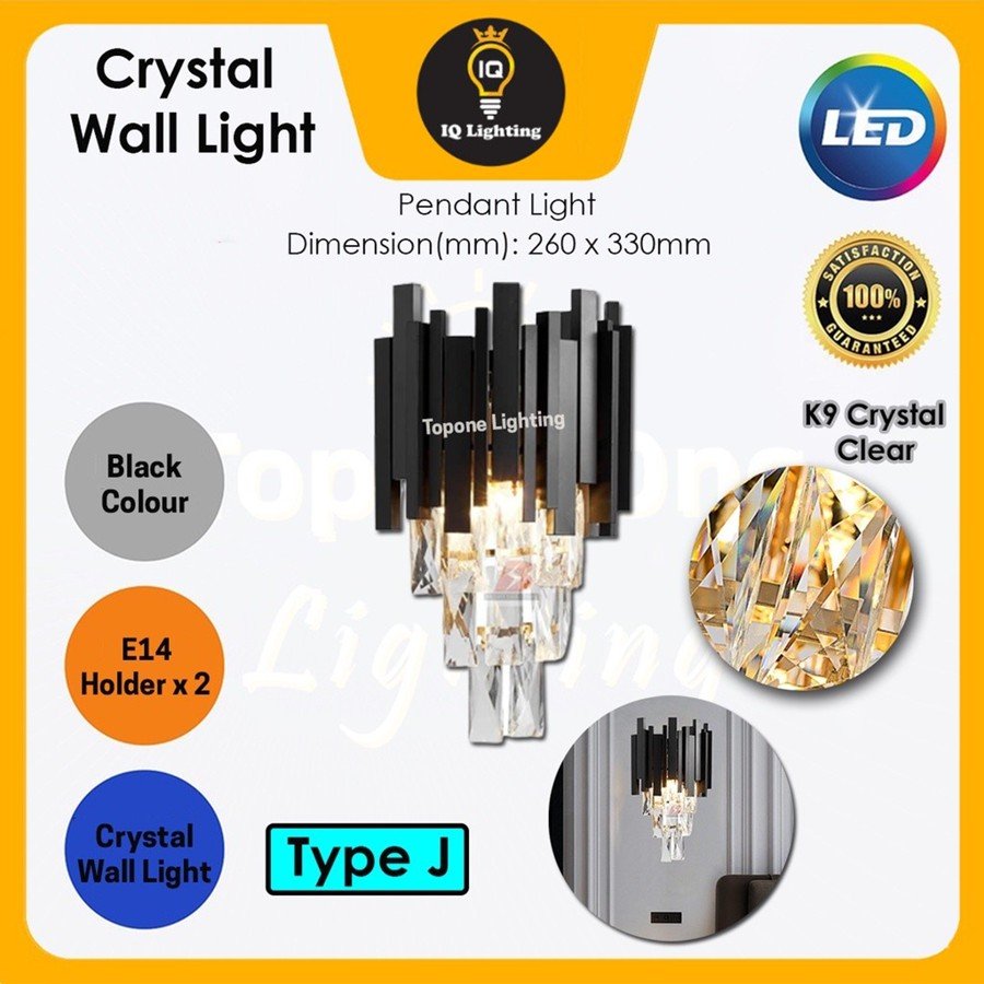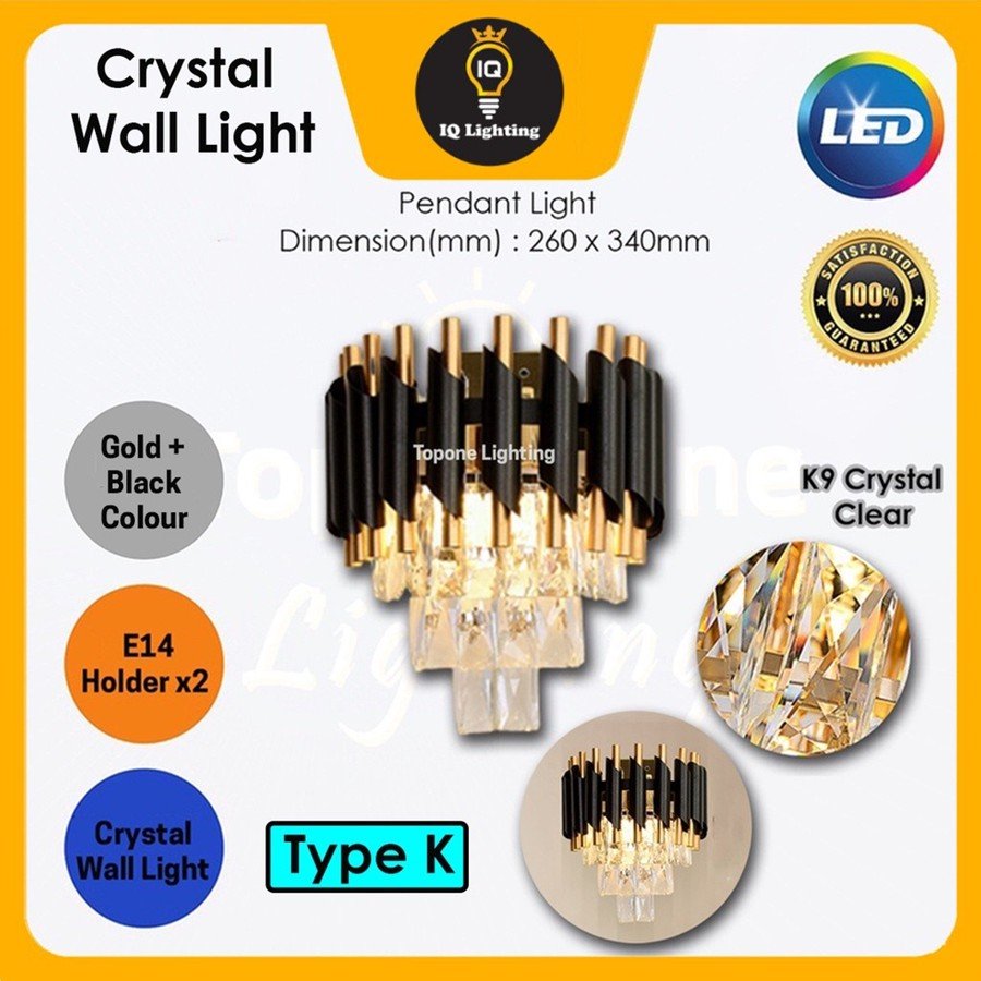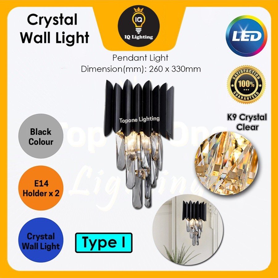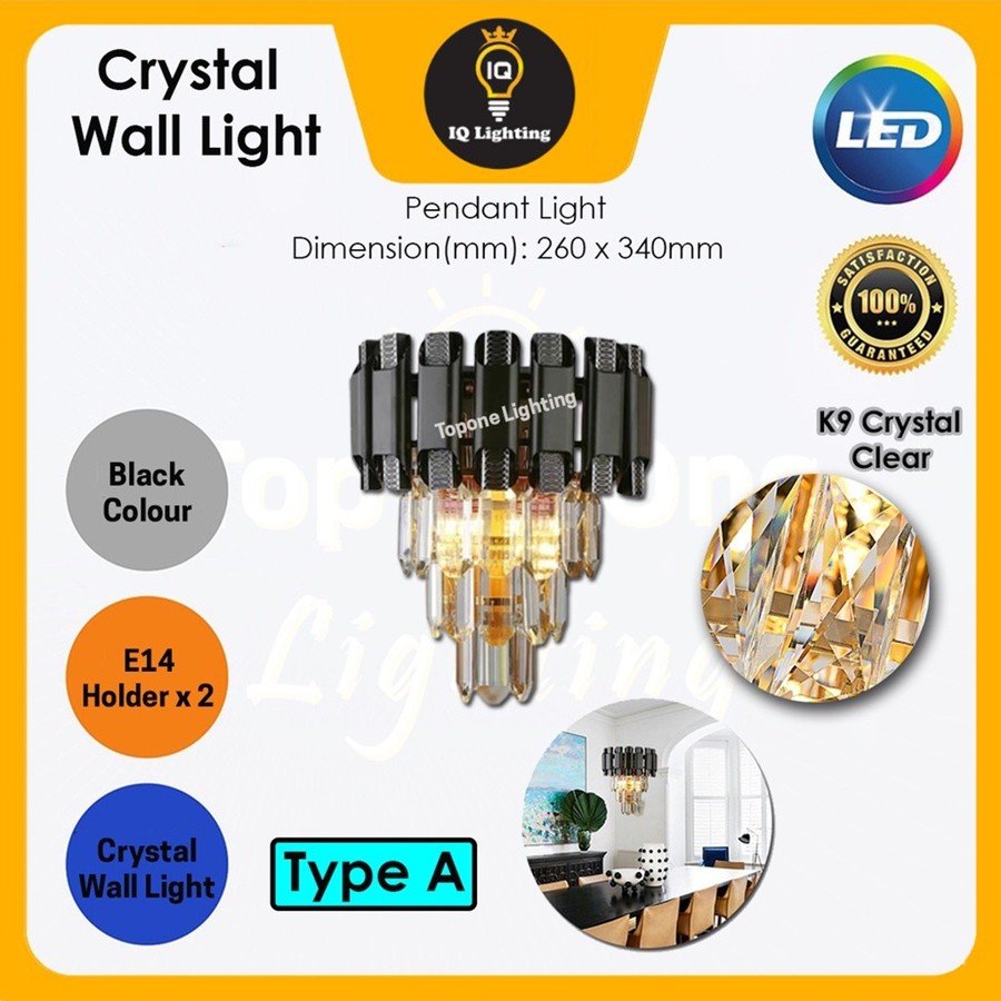 HOT SALES Modern Luxury K9 Crystal Chandelier Wall Light E14 Holder Crystal Wall Lamp Black/Gold Lampu Hiasan Dinding