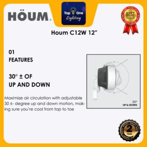 🔥2024 NEW🔥 HOUM C12W Air Circulator Wall Fan 12″ 6 Speed Strong Wind Auto Up and Down Oscillation /Kipas Dinding / 墙壁风扇