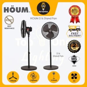 Introducing HOUM S Series, S16, a classic and vintage look, a much stylist stand fan you are looking for. S16, a metal fan with a glamorous wooden skin finishing, perform at a great level with strong air distribution to wide area and providing fresh air circulation. The fans’ 3-speed function, as well as tilting and oscillating features, ensure an effective cooling effect.