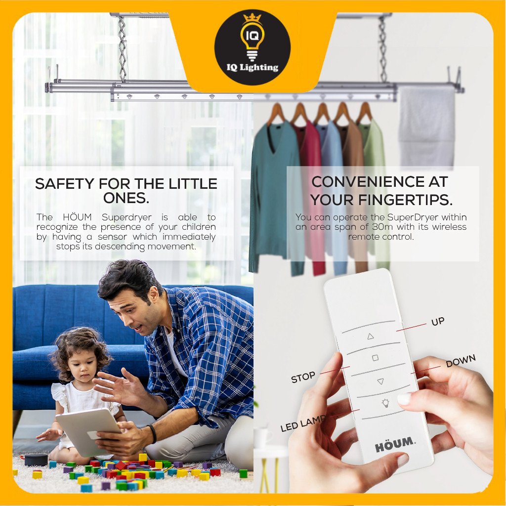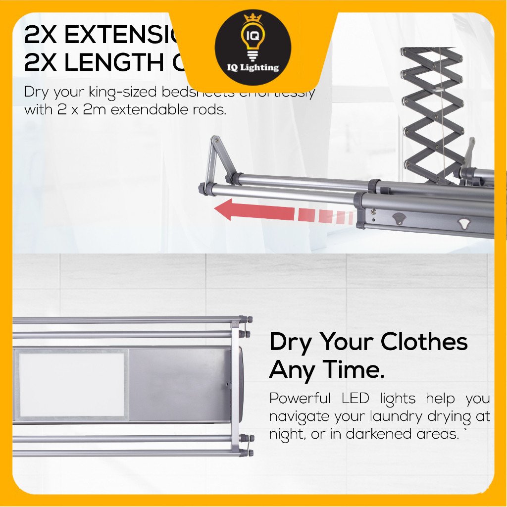 The LED lights are specifically designed to illuminate your drying clothes in the dark, be it at dawn or late at night. Perfect for working couples or families.
