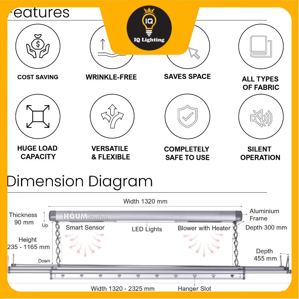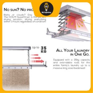 Its dual heat outlet simulates natural sunlight drying heat up to 40°c. Durable and strong, it has extendable rods that can hold heavy and big laundry with a maximum of 35kg weight (biggest load capacity for residential dryers). In comparison to conventional ones, SuperDryer saves electricity by 75-80%, maximizing efficiency.