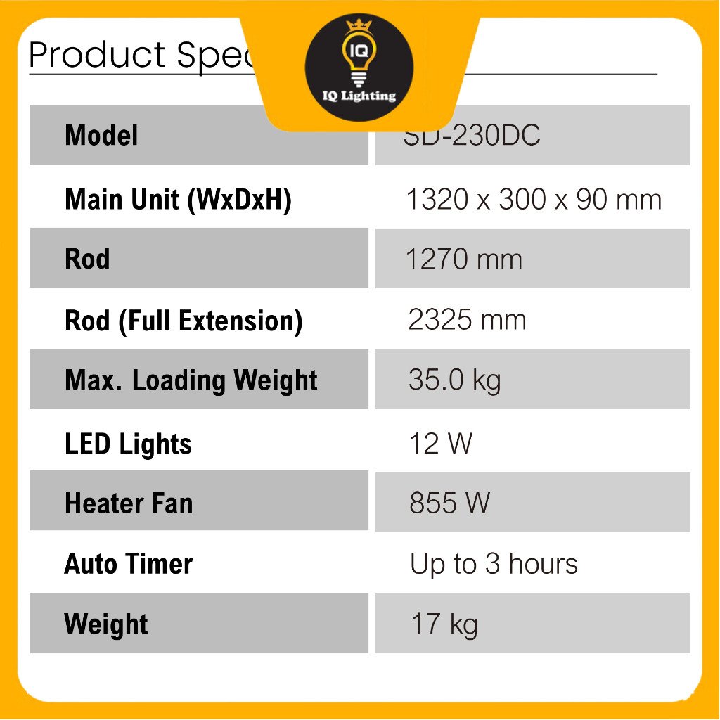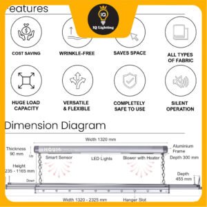 It is great for confined spaces like condominiums or apartments as installation is done on unused ceiling space. With a wireless remote controller, convenience is at your fingertips. Adding further to its flexibility, LED lighting on the dryer illuminates drying tasks in the dark, so you can dry your laundry at night or at dawn.