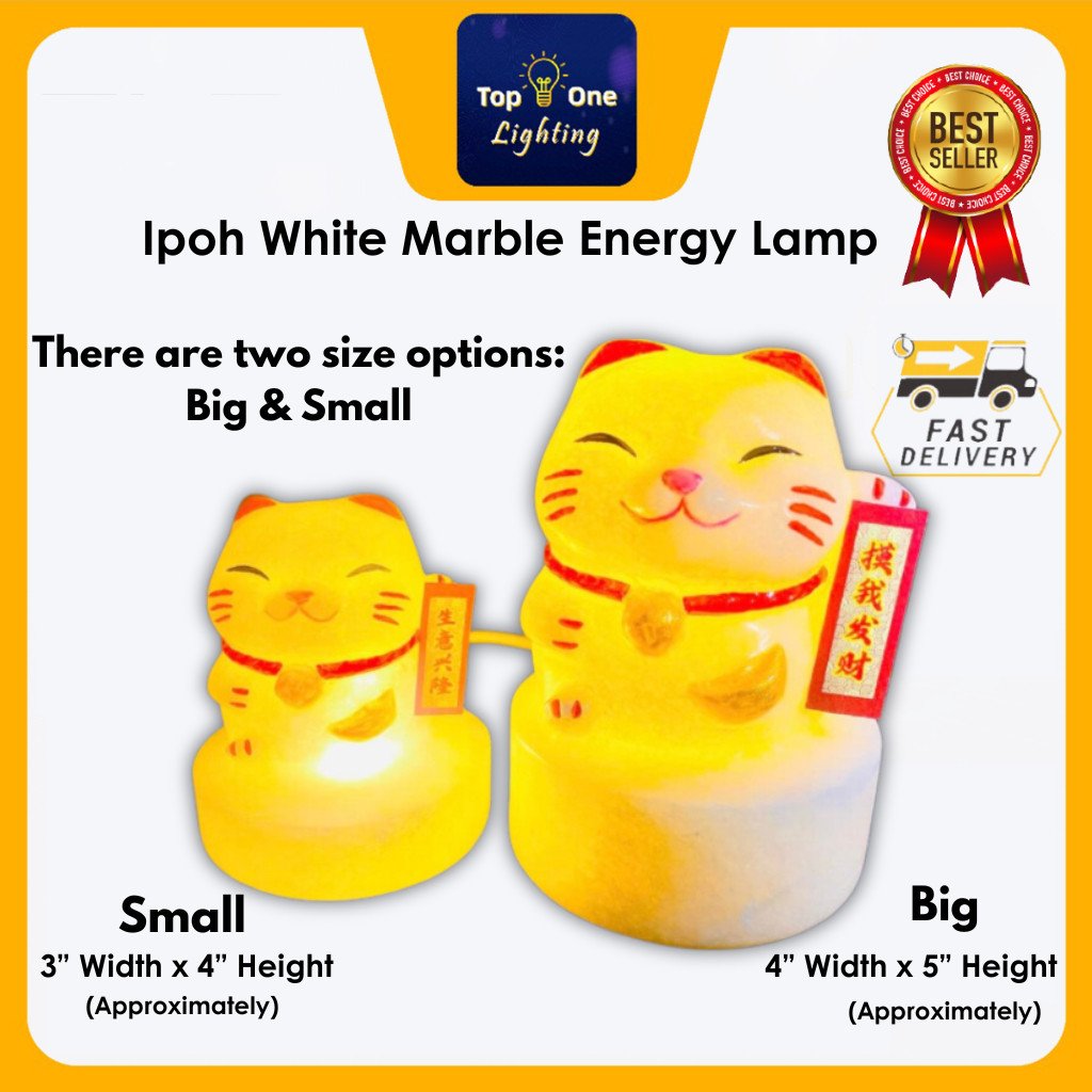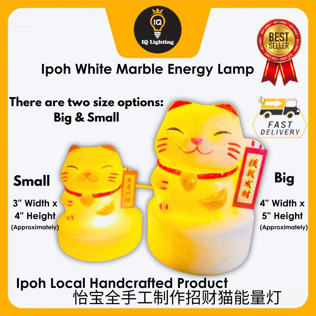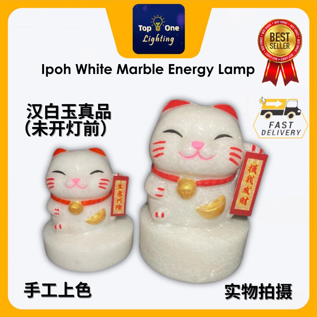 Ipoh White Marble Lucky Cat Lamp A Grade Nature Energizing Energy Han White Marble Fortune Cat Welcoming Cat Jade Specialty Unique Natural Stone Relieve Stress Sleep Well Good Wealth Fortune 21SOS Handmade Ipoh Product Lampu Kucing Bertuah 怡保优质上等汉白玉招财猫能量灯