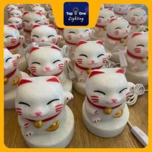 -Natural Ipoh White Marble Lucky Cat Lamp x 1