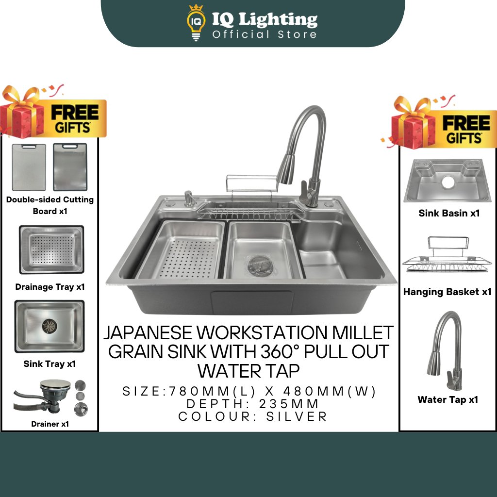 Japanese Workstation Millet Grain Sink with 360° Pull Out Water Tap