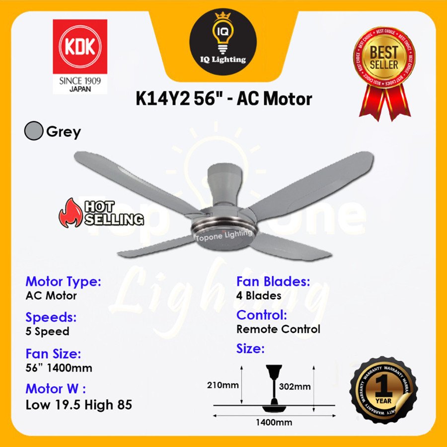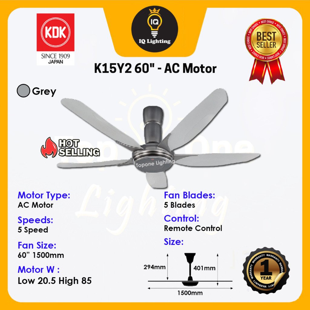 KDK K14Y2 / KDK K15Y2 56” / 60″ Inch V-TOUCH SERIES 5 Speed AC MOTOR With REMOTE CONTROL CEILING FAN /KIPAS SILING 家用风扇