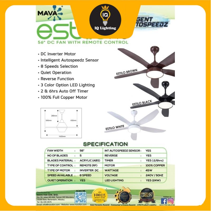 With the overwhelming praises of Estilo, Mava have decided to improve it even further to provide an even more satisfying product to our users. The ESTILO PRO. As the design of Estilo are an all time favorite choice for users, the Research & Development team had successfully enhance Estilo Pro specification without affecting the exterior design of the fan.