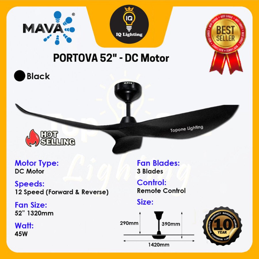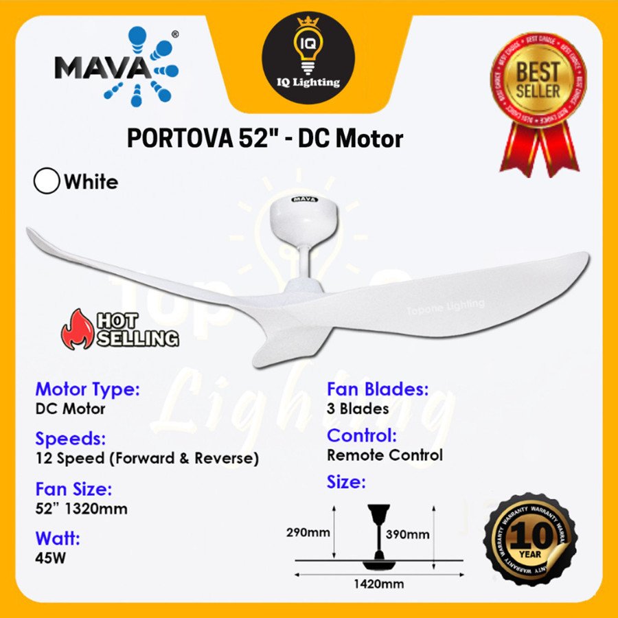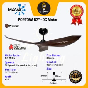 Mava Fan PORTOVA 52″ Remote & Smart Phone Control Ceiling Fan