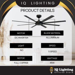 Extra Large, Extra wind flow & Extra Coverage. Mava Titan will definitely the ideal choice if one requires the extraordinary size that could covers a much more larger coverage than the standard fan. The 80 inches blades are worry free in it’s durability, it is made out of high-grade alluminium. It has high strength and excellent corrosion resistance. It has a enhanced DC motor that produce spectacular performance for such large ceiling fan. With the as many as 8 high-grade alluminium blades and enhanced DC motor, it is possible for us to produce a great wind flow with such large blade without losing any balance and affecting any performances. It comes with auto timer 1/2/4/8 Hours and reverse function.