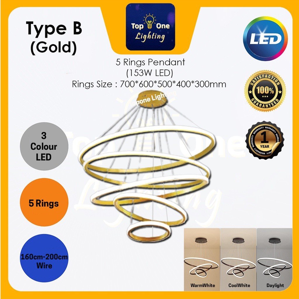 Modern Circle Design Pendant Light 3 Color Ceiling Light Lampu Hiasan Lampu Mewah Ruang Tamu Lampu Gantung Lampu Siling