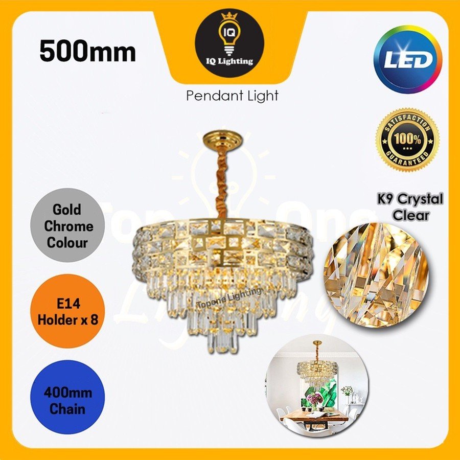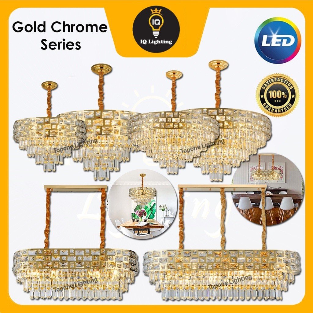 Modern Luxury Pendant Light Gold Chrome Series Chandelier Crystal Light Stainless Steel Ceiling Lamp Lampu Siling