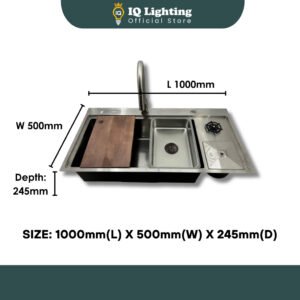 6. Space-Saving Design: Utilizes an innovative inner wall sliding design with double-layer tracks for accessory storage, maximizing workspace. Comes with a solid wood cutting board, nano pot-in-pot, triangular drain basket, and sink glass rinse for added convenience.