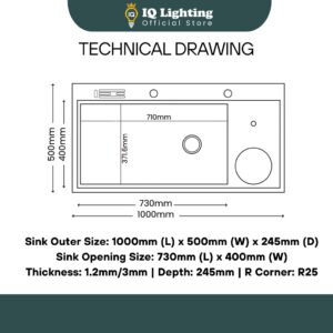 5. Noise Reduction & Condensation Prevention: Features thickened acoustic coating and soft rubber noise reduction lining for a quieter kitchen experience. The anti-condensation coating keeps the cabinet dry, prolonging sink life.