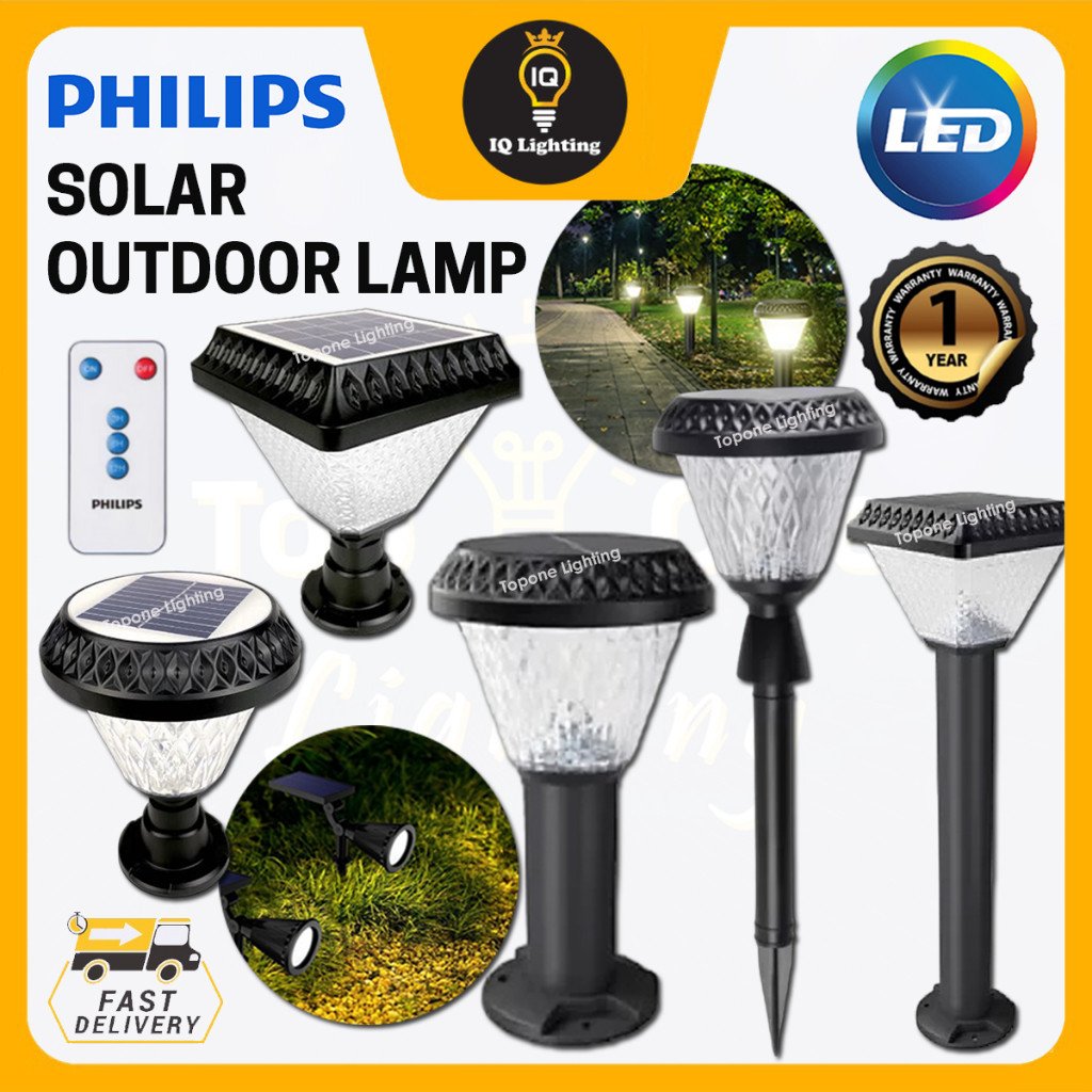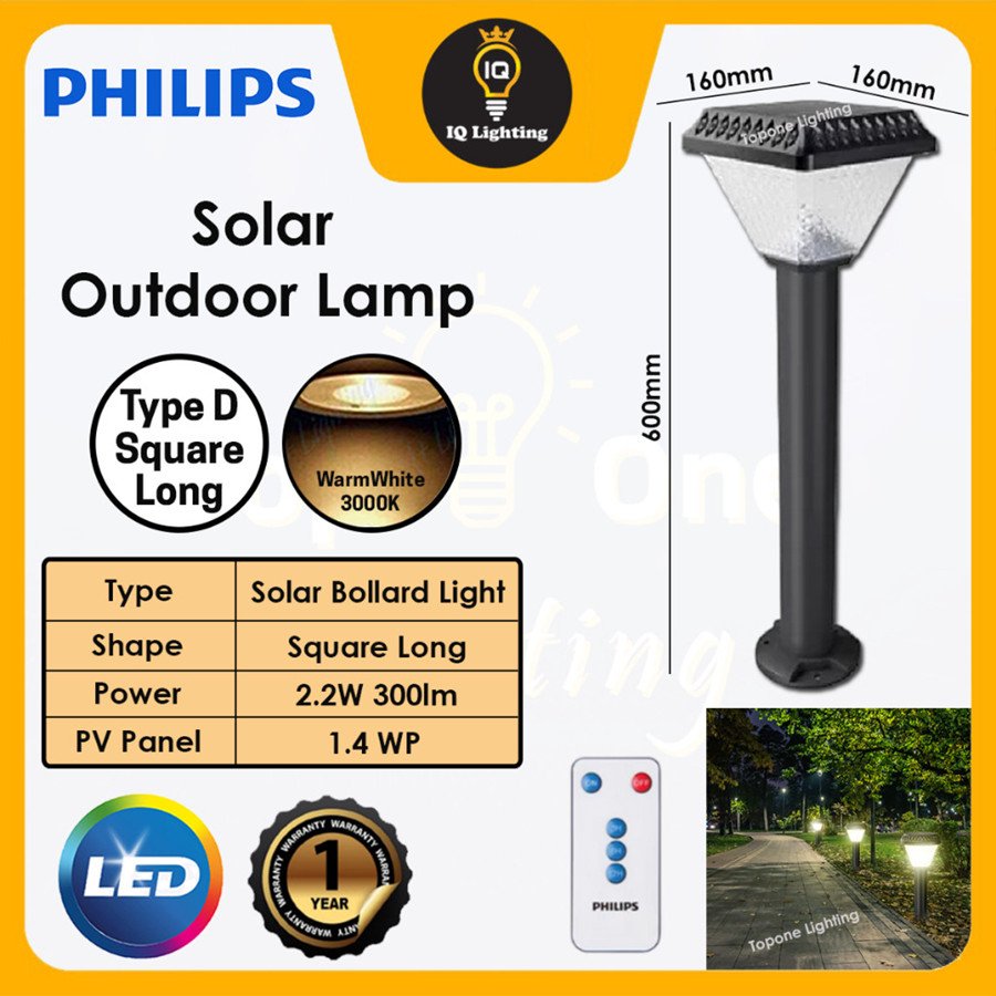 NEWPhilips Round / Square Solar Outdoor Lamp Waterproof Solar Bollard Light 3K Warmwhite Solar Gate Top Light