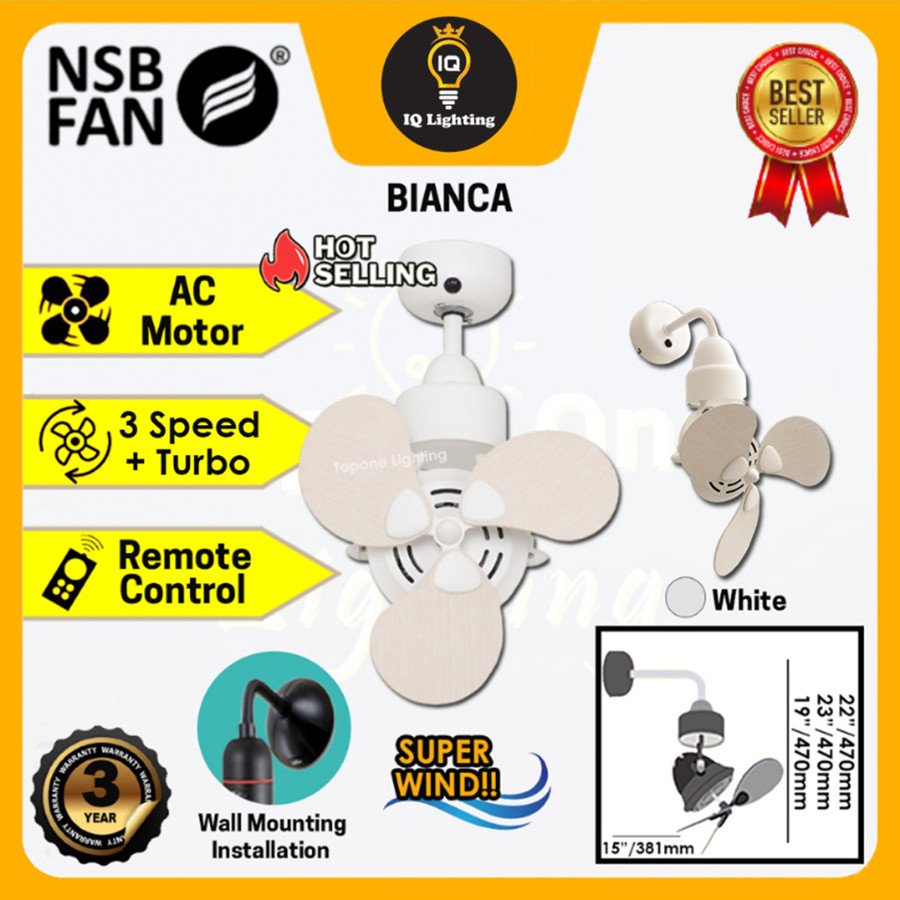 NSB BIANCA OSCILLATING 15” CEILING FAN